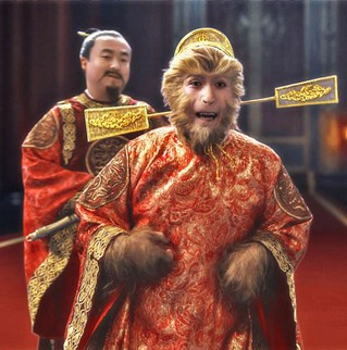 不无巧合的是,此后演过孙悟空的周星驰、张卫健、甄子丹、郭富城等人,身高均在一米七左右,演猴戏形体上占了优势。最矮的张卫健,在电视剧《西游记》和《齐天大圣孙悟空》中两次演美猴王,帅气洒脱,一派欢乐。到了甄子丹与郭富城,媒体宣传一度主打化妆术之繁冗高超,那张猴脸甚至到了叫人认不出本尊的地步。猴性大于人性,仍然是在六小龄童的路子上前行。