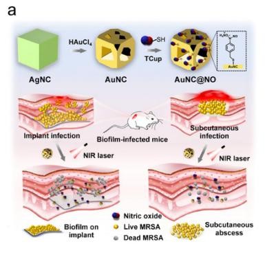 图 2 AuNC@NO的合成路线及其对MRSA生物膜感染小鼠的抗菌作用