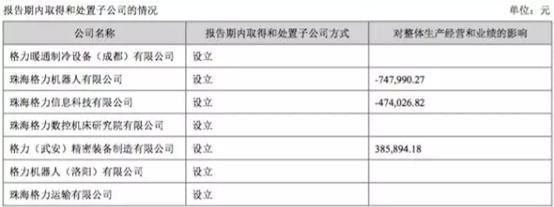 过去几年,格力电器一直在尝试多元化发展,在手机、新能源车等领域没能取得预期效果后,格力电器把智能装备作为了格力电器发展的重点。格力电器2017年年报显示,从产品分类的营收来看,空调依旧占据了83.22%的绝对高份额,智能装备取得了21.26亿元的营收,占营收总额的1.43%,尽管比例不高,但比2016年时的0.15%已有大幅增加。而去年格力电器新成立的子公司中,也有多家属于智能装备领域。