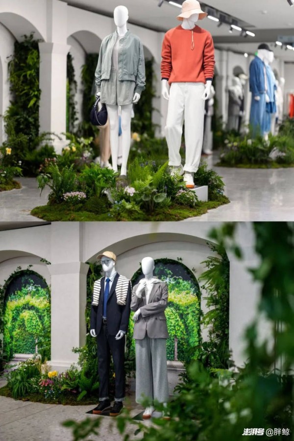 步入张园优衣库「LifeWear 服适人生」春夏新品展馆,绿意盎然的蕨类植物与木质展台构建出都市从林意象,新品服饰错落陈列,完美诠释新品主题“明媚辰光”中生命力的流动。