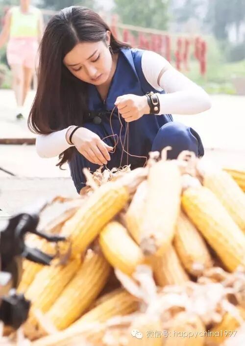 女神“晒秋”乐趣多,赵丽颖剥玉米忆童年