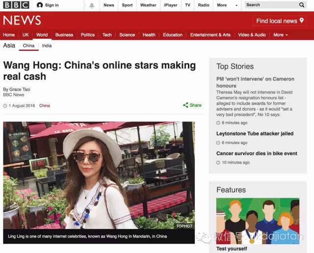就在前天,8月1日,英国的BBC用“Wang Hong”新词上标题,报道中国网红的赚钱速度,超过范冰冰。