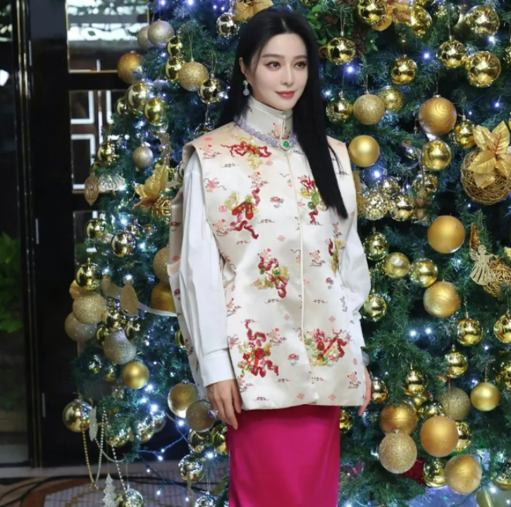 除了TVB专访,范冰冰最近还参加了香港富商赵世曾在其豪宅“赵苑”举办的圣诞鸡尾酒会。在这场名流云集的活动中,范冰冰再次选择了新中式风格的服装,一件刺绣马甲搭配缎面半裙,让她在众多穿着西式礼服的名媛中显得格外亮眼。她还与赵世曾一家亲切合影,甚至即兴跳起了交谊舞,展现出了自己优雅大方的一面。看来,范冰冰已经成功融入了香港上流社会,成为了这个圈子中的一颗璀璨明珠。