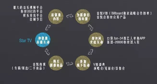 现在反思一下,粉丝经济在十年前起步时,往往会被认为是热闹经济、场面经济、注意力经济,初期有这个认识和操作思路并不奇怪,因为大多数人看不清其未来,先有人在考虑钱也是对的。但这几年有个越来越明显的趋势是,能不能在叫好的同时也能叫座,从粉丝经济中真正获取真金白银?如果明星和粉丝处在无序的自由流动状态,这一设想永远也不会实现,但像音悦台这样为粉丝经济设计好套路和实现路径的平台,当前正面临着一个粉丝经济升级换代的历史机遇。