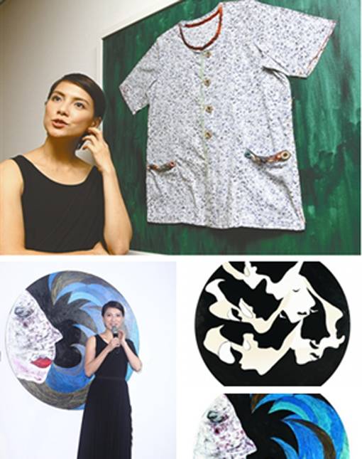 2011年10月22日身兼歌手、演员及作家等多重身份的李心洁,以艺术家的身份在台北举办首次画展《吟》。多年前,李心洁最爱的祖母过世。从那天起,她就开始画画。作品《阿嬷》的创作动机就源起于祖母过逝后,母亲让家中女眷保留一件祖母的遗物,李心洁没选择珠宝金饰,而是选择了祖母常穿的碎花夏衫。李心洁将这件衣服缝在画布上作成了一幅画。我个人比较喜欢她的《禅吟之谧》,蓝色的底色有些淡淡的忧伤。李心洁选择以绘画作为自我疗愈的方式,让所有难以言说的哀伤恸苦随着颜料聚合在各种色彩、笔触所制造的团块中,她的作品述说着各种低吟,以及自我的流浪。