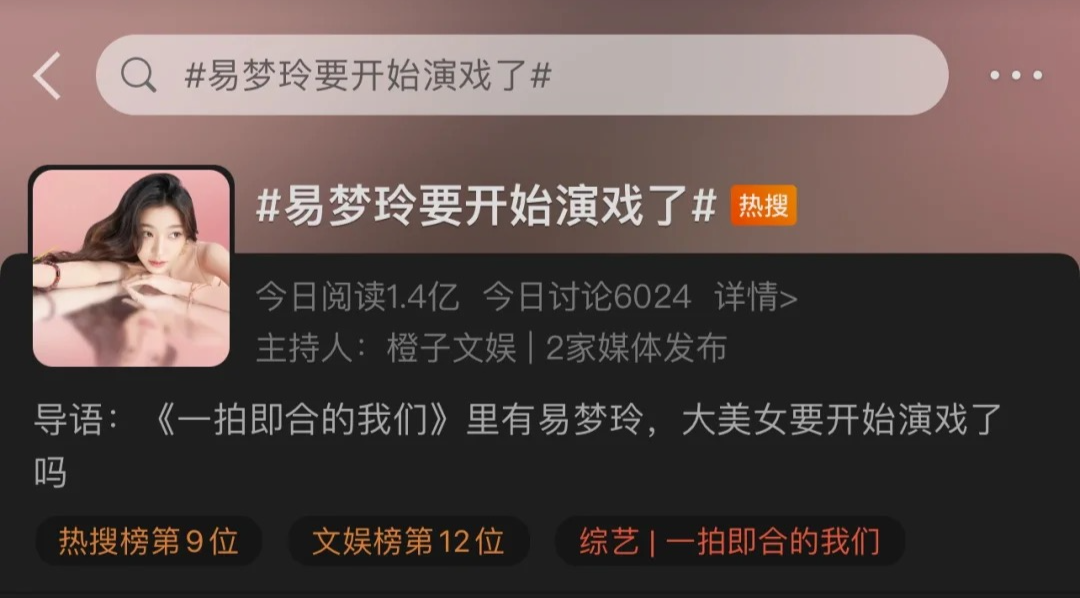 7月13日,优酷平台推出一档全新演戏类综艺《一拍即合的我们》,并在官网公布了嘉宾海报,其中千万级网红易梦玲也赫然在列。