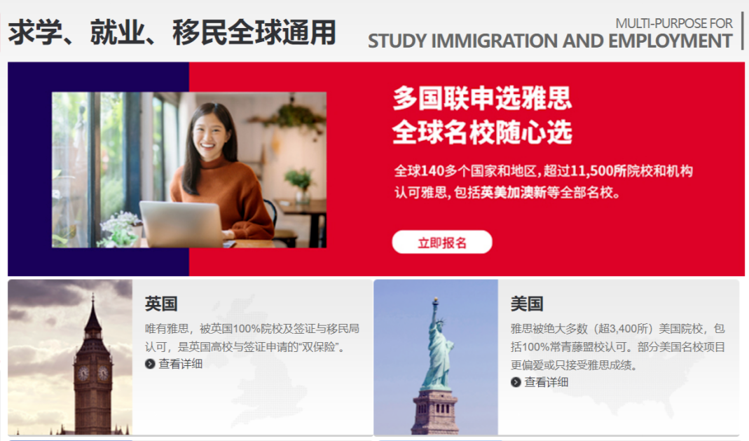 图源 | 雅思考试中文官网目前,雅思成绩已受到全球140多个国家和地区,超过11,500所教育机构、雇主单位、专业协会和政府部门认可。