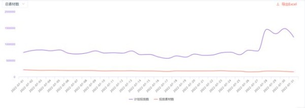 从具体数字来看,7月份投放情况实现了指数级增长,日均投放素材数为246,673组,与6月份的183,140组相比增长了34.7%,保持了暑期游戏投放的热度。尤其是《暗黑破坏神:不朽》、《英雄联盟电竞经理》和《奥比岛》等游戏的上线,进一步推动了游戏市场的良性发展。