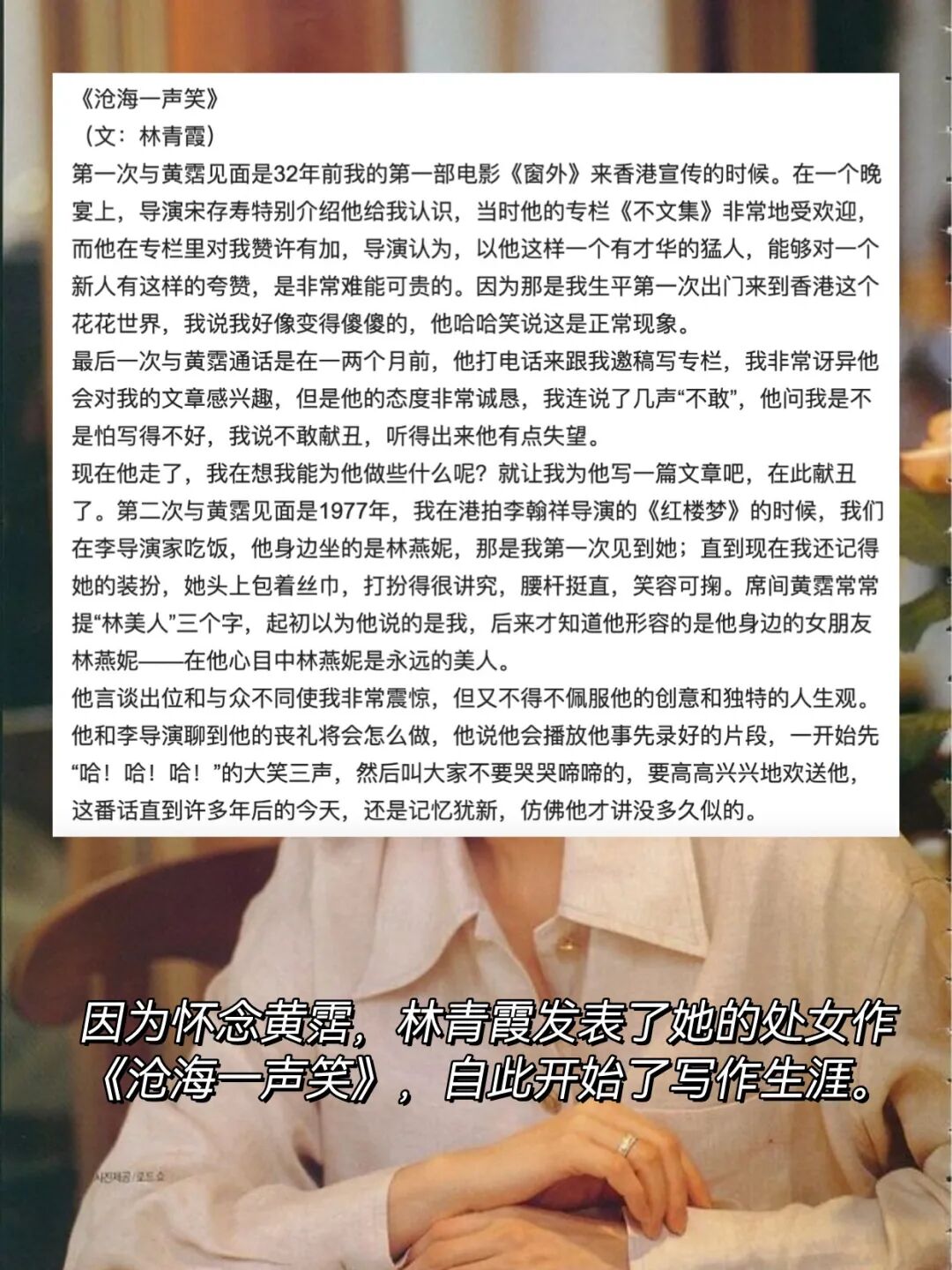 比如林青霞,在写作小白时期,写得最好的作品,就是关于她身边熟识的朋友的,甚至她人生第一篇文章就是关于她的朋友黄霑的。