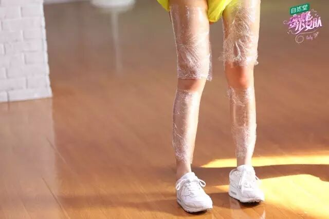 为了不长肌肉,缠着保鲜膜训练 ↓