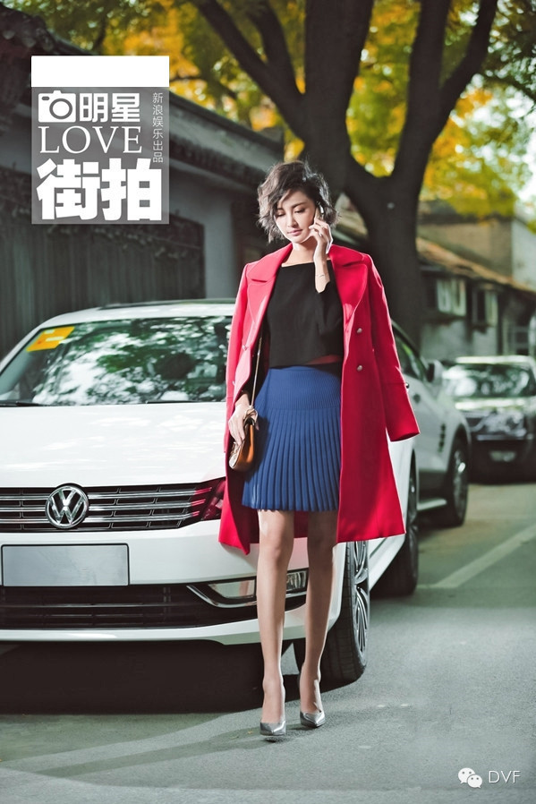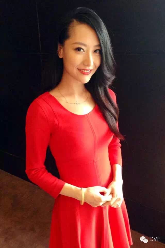 中国著名演员白冰身穿DVF 2014秋冬系列PALOMA款红色连衣裙现身活动现场。中袖设计和散开的裙摆凸显白冰甜美的一面。