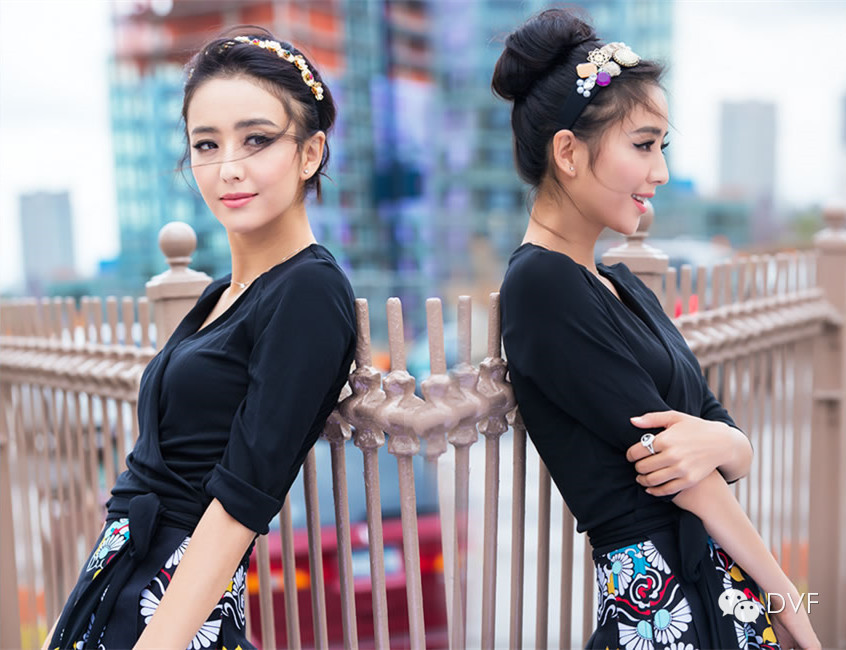 佟丽娅最近身着DVF JEWEL款多彩艺术印花伞摆裹身裙出镜,为海报网拍摄时尚大片。温柔优雅的她盘起发髻,在裹身裙的装扮下宛如一位聚光灯下的舞者,光彩夺目。