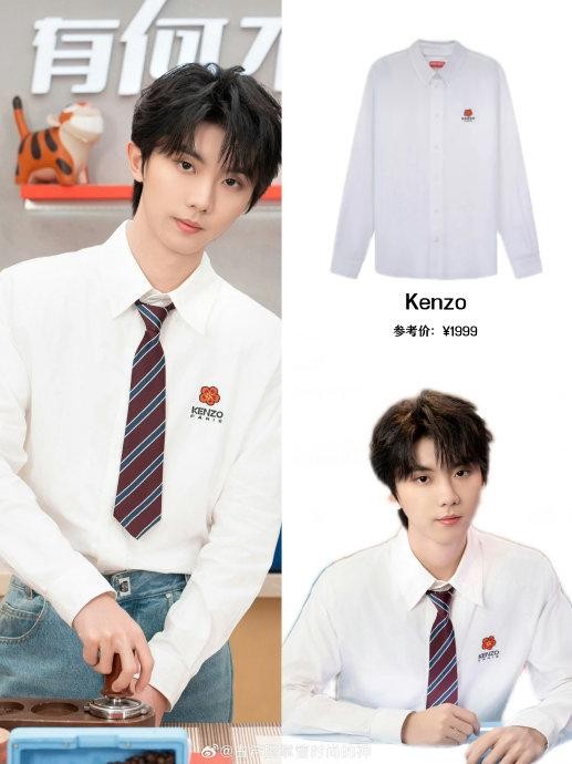 马嘉祺:白衬衫+领带的校园风,白衬衫搭配经典领带,简约而不失青春气息,展现了干净利落的校园风格。