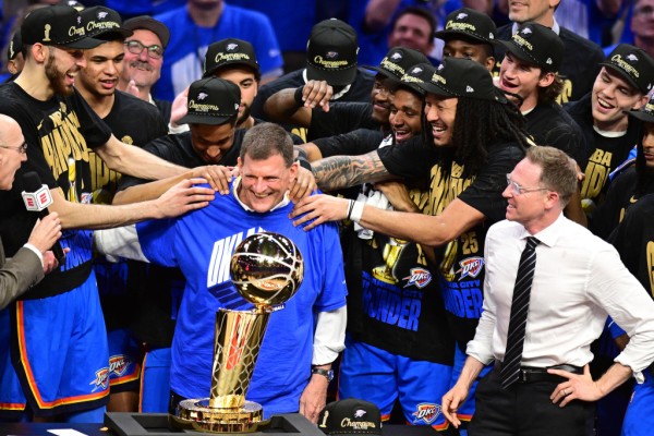 彼时,在全场的热烈氛围和自己的激动情绪双重作用下,这位球队总经理已经满头是汗,旁人很难分辨他用食指两次擦拭眼角是为了抹去泪水还是汗水,但他回答时沙哑的声音确实带着一些颤抖,“俄克拉荷马城拥有一支真正的球队,而不仅是一个总冠军。”