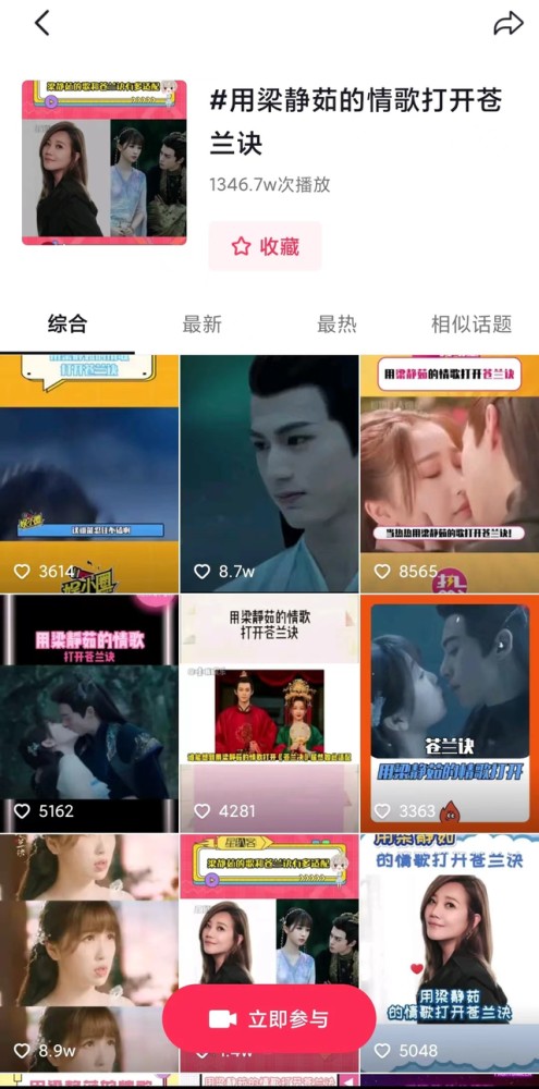 #用梁静茹的情歌打开苍兰诀 形成了病毒传播攻势,不仅在站内走红,还“出圈”到微博、B站等平台,甚至成为影视宣发的话题抓手;
