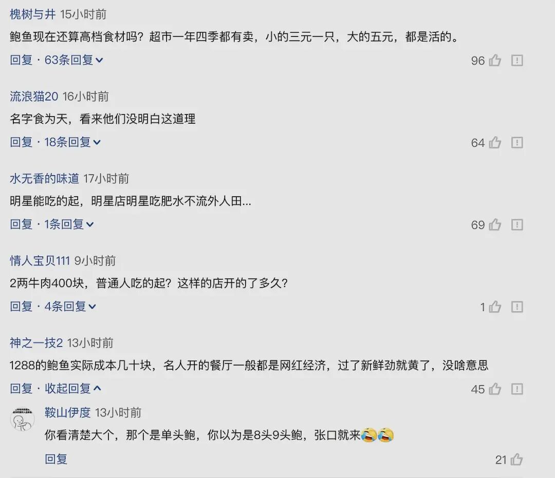 这位网友说的很有道理,美食发展到今天,菜品价格确实是一个玄学的概念,贵自然有贵的道理。