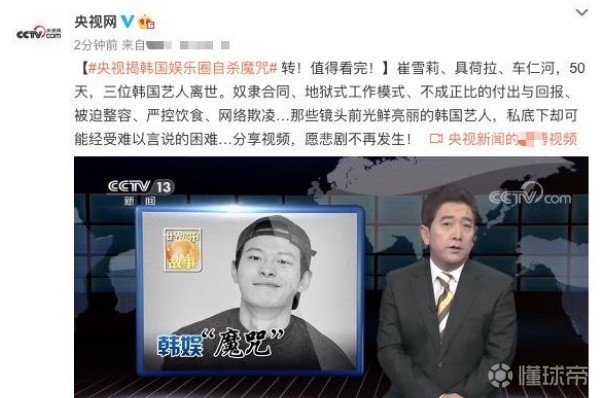 央视点评韩娱圈艺人自杀,这是娱乐圈的悲剧,也是人性的悲剧