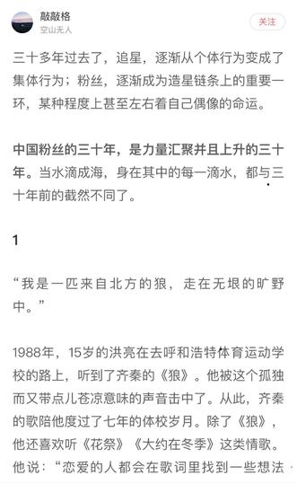 在今天虎嗅的文章《中国粉丝三十年》中,作者梳理了自1989年至今的中国粉丝文化,他认为早年的粉丝们与自己喜爱的明星相连的唯一纽带是他们的作品。而随着电视和网络不断拉近粉丝和偶像之间的距离,作品逐渐变得不再重要,粉丝将自己充沛的情感直接而完全的寄放在偶像本人身上: