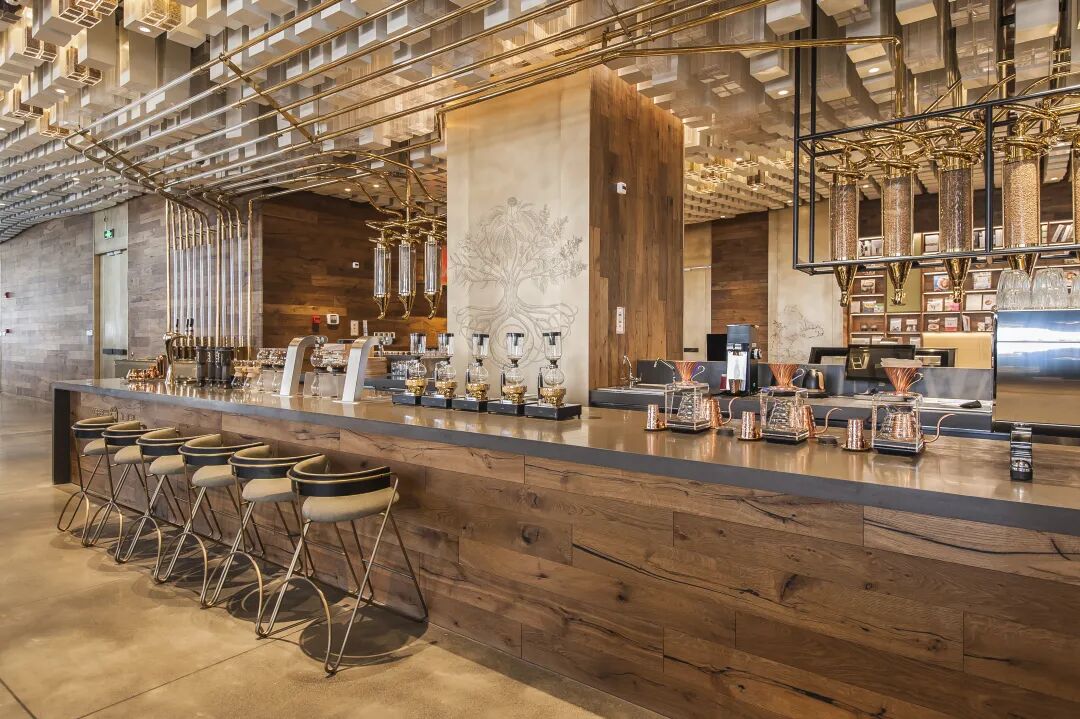 一层精准食疗版块,分为咖啡坊、茶饮坊、烘焙坊、古膳厨房和红酒坊五大功能区。零售专区,货架上陈列着蜂蜜、枸杞、黄芪、西洋参等中药食材,餐饮区里,各式饮品、汤粥、面包应有尽有。最吸睛的当属各式草本茶饮、草本烘焙了,枸杞拿铁、罗汉果美式,新颖又不失口感,精准踩中时下年轻人赛博养生的风口。
