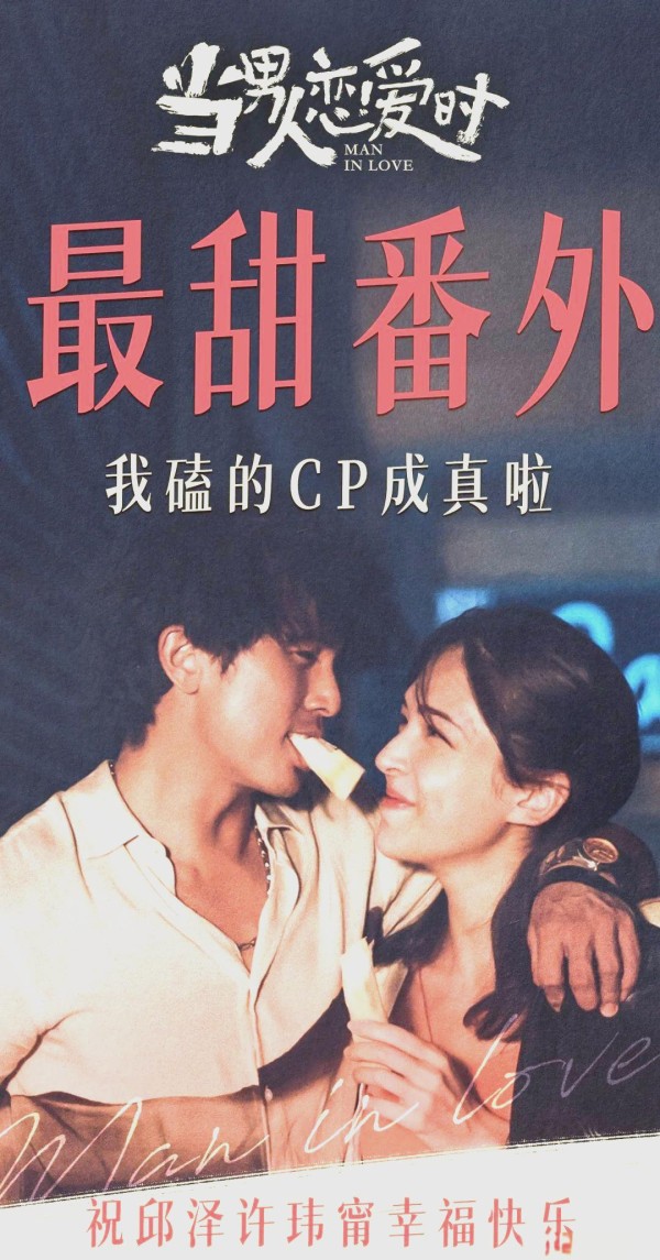 上周五,邱泽和许玮甯宣布了他们的婚讯,这一消息在娱乐圈引起了广泛关注。两人曾共同出演电影《当男人恋爱时》,虽然在影片中他们的故事以悲剧结尾,但在现实生活中,他们却迎来了幸福的结局。片方为此特别制作了一张庆祝海报,尽管看上去有些匆忙,但却透露出一种朴实无华的喜悦,让人感受到这份喜事的真挚与纯粹。