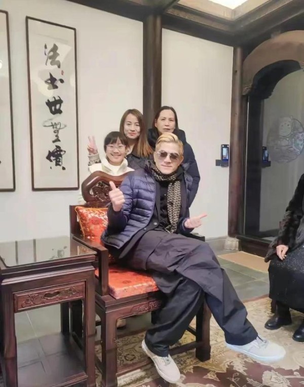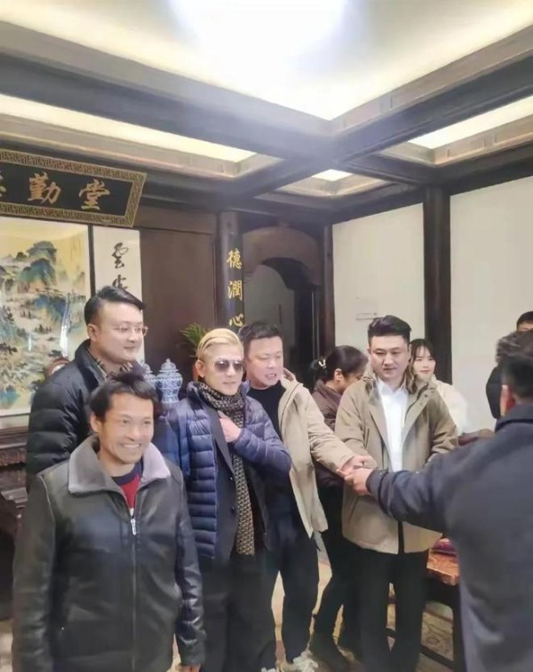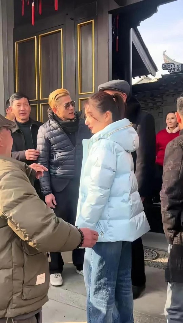 郭富城夫妇同村里人合影,明星上镜效果太绝,脸小身又好