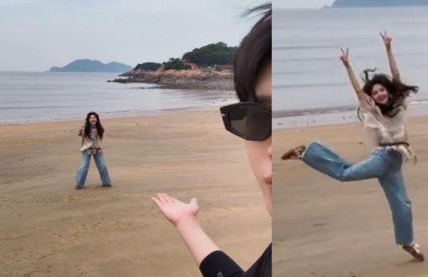 事后范丞丞还上传了一段短片,他在沙滩上自拍说:朋友们,今天跟这一位期女子组队,需要大家的微博助力,麻烦大家多多给力!随后镜头一切,范丞丞以男友视角拍摄章若楠在沙滩上高举双手跳跃,还狂奔冲向海洋的模样,同样可爱到不行,影片冲上热搜,流量迅速破287万。