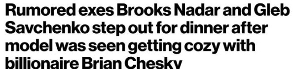 据传,两人是在纽约的某场万圣节派对上一见如故,互动频频,眼神里的甜蜜简直闪瞎了在场的灯光师。从那之后,他们被多次拍到一起现身纽约的高档餐厅,每次都显得格外亲密。这让网友们开始猜测:布鲁克斯是不是找到了新归宿?有人打趣道:“难怪她选择了切斯基,毕竟,谁不想找个能带你环游世界住豪宅的另一半呢?”