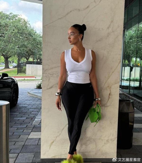 杰伦格林女友晒照,身材火辣惹不像40岁,火箭新星带娃上镜