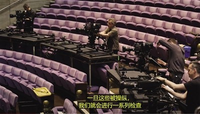 将舞台剧拍摄成高清影像时,镜头设置、掌镜人对剧本的理解、对舞台调度的熟悉度等因素决定了“视频”成品质感。 图/纪录片《从舞台到银幕:NT Live拍摄揭秘》(From Stage to Screen|Making National Theatre Live)截图。