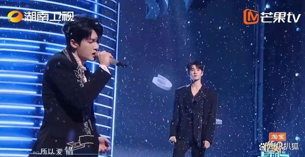檀健次站在纷飞的雪花里,闭眼蹙眉唱出“原谅我的爱错”,嗓音沙哑沉重,像冬日里碎了一地的玻璃。陈哲远就站在他身旁,声音清澈却带着微颤,两人黑色西装对比着苍白的雪景,镜头推近时,连呼吸都带着故事感。