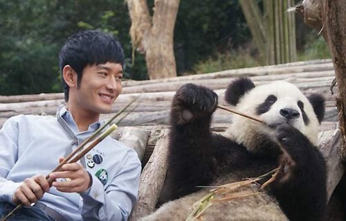 据悉,黄晓明认养的这对熊猫宝宝,作为2008年全球出生的第一对大熊猫,也是经历过512大地震,得到抢救和保护的大熊猫帼帼所产下的一对小宝贝。在雅安大熊猫保护基地拍摄公益宣传片时,黄晓明表示小时候仅在动物园中隔着大铁笼观赏过可爱的国宝,这会有幸亲密接触到了这么多可爱的熊猫宝宝,令其激动又兴奋,不断的惊呼“好可爱”。当与大熊猫拍摄合影时,一刻都没闲着抱着竹子猛啃的大熊猫,憨态可掬的样子星位十足,甚至抢过大明星黄晓明的风头。不过最后出来的效果,令摄影师都忍俊不禁地打趣道:“看这‘两人’背靠背的亲密模样,真是宛如一部唯美的偶像剧啊!”