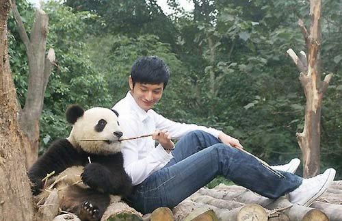 黄晓明花百万领养熊猫 学小熊猫趴地[组图]