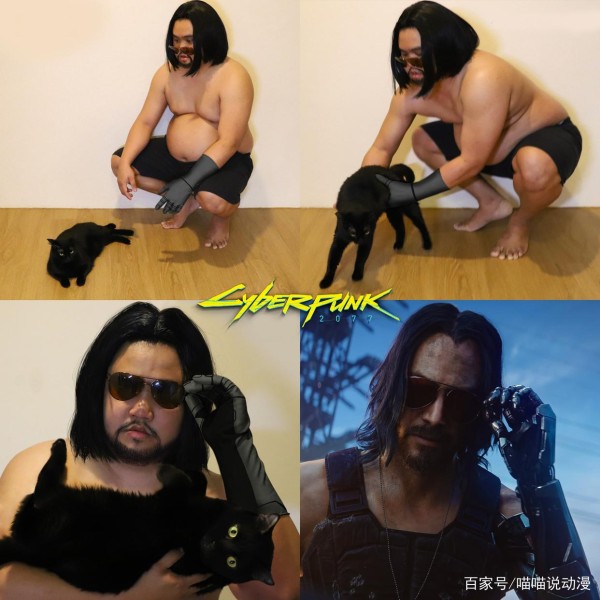 于是小胖哥也忍不住cos了一下杀神的银幕经典形象,还好只cos了上半身,不然那圆滚滚的肚子当真出戏呀!还有,看小胖哥这低成本的cos,为了少花钱,道具黑猫都用上了……一套装备下来,七八分的形似吧,只不过,为什么小胖哥cos的杀生颇有一股油腻大叔的味道?