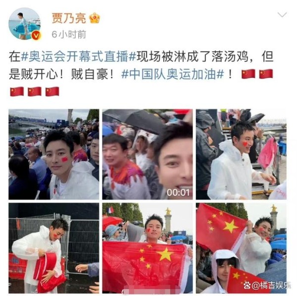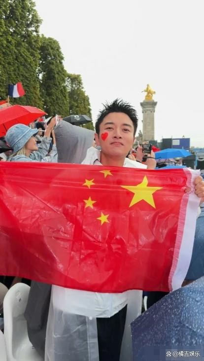 贾乃亮在巴黎奥运开幕式被淋透,雨中高举国旗,就是怀揣爱国情感