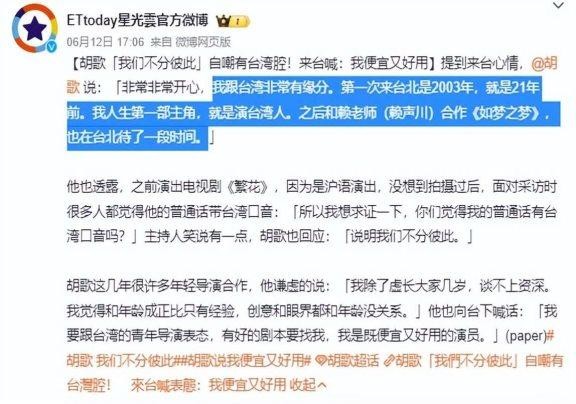 虽然胡歌的话语十分直白,但也展现了他的真诚。他还谦虚地表示:除了年纪稍大一些,并不算资深。不得不说,胡歌这次来台湾,估计也收获颇多。