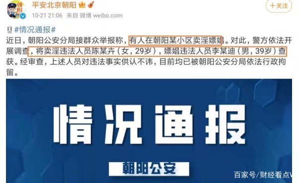 平安北京朝阳在情况通报称,接朝阳群众举报,嫖娼违法人员李某迪(39岁)被查获,并对违法事实供认不讳。目前李某迪和卖淫人员陈某卉已被依法行政拘留。