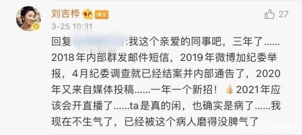 第四轮:你向纪委部门党组织举报,纪委用了两个月多时间,对你爆料里所提到的所有信息点挨个调查核实,详细取证了本人及家人武汉大学本科招生、本科毕业、硕士、博士、留校的全部第一手原始资料,把当年的所有见证人包括退休工作人员全部挨个调查访谈核实了一遍,原始资料摞起来有半人高。去年5月纪委调查结案,所谓“爆料”中所提到的所有违规违纪和学术不端信息点皆不属实,调查结果报备湖北省纪委,并在全系大会、全院教职工大会公开通报和公示两次,全文通读长达十页的调查结论两次,澄清事实;