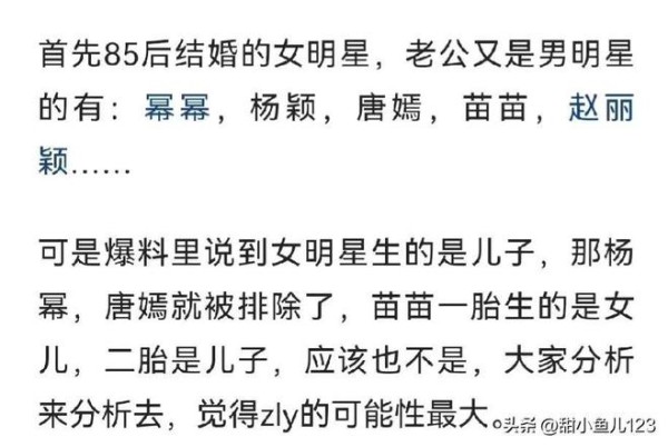 这群网友自然不是什么省油的灯,根据一点点的小线索,当即锁定某位当红的女明星,这件事情曝光后,引起了网友的热议,大家纷纷认为,该女星为了利益出卖自己的婚姻,还生下孩子,真的是太可耻了!
