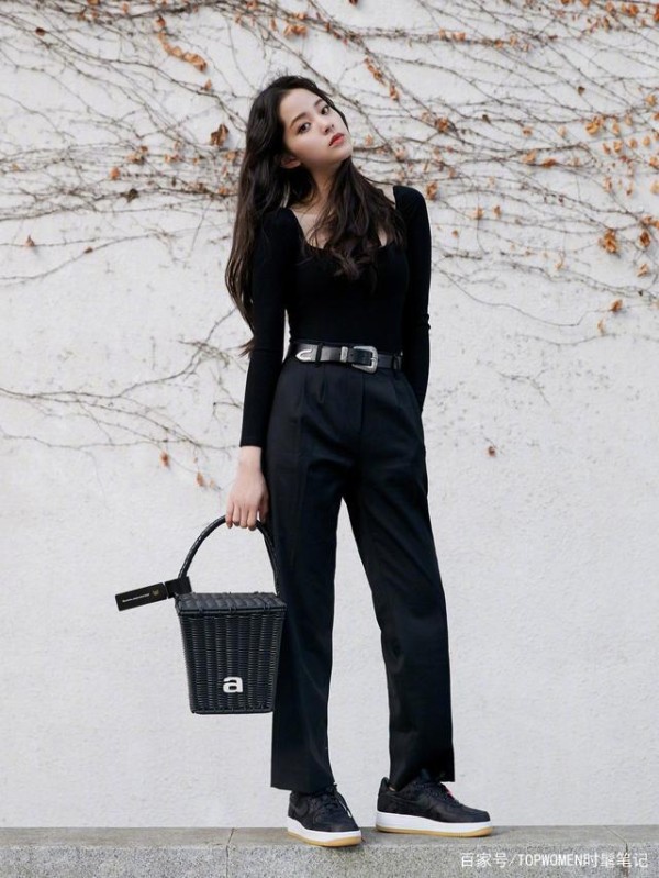 我们的时尚先锋欧阳娜娜显然不会放过这个敢时髦的机会,一件紧身方领上衣搭配一条黑色直筒裤,一双平底运动鞋延续了一贯的街头风,菜篮子在她手上竟然没有出门买菜的劣质感。