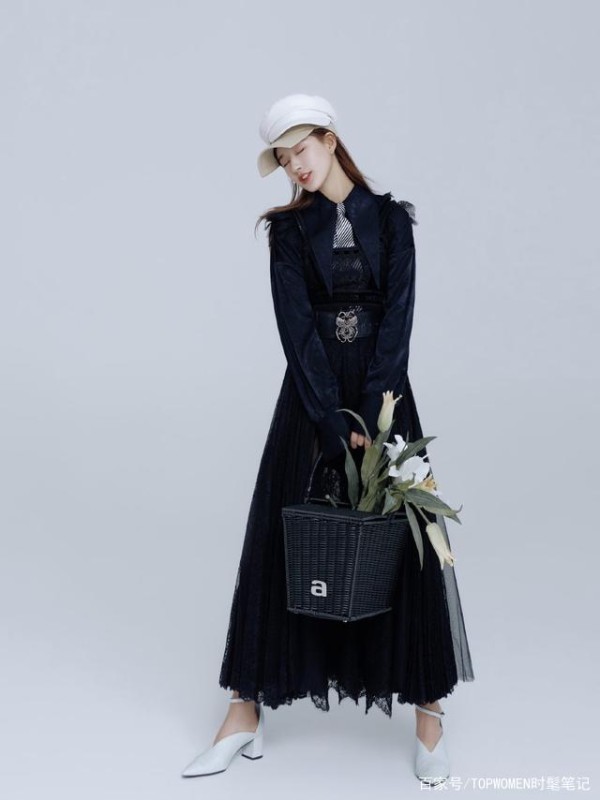 赵露思怎么瘦成这个样子了?我没认出来,不过一看就是杂志搭配上不会太出错,黑色的裙装是比较偏少年暗黑风的,菜篮子里装满鲜花也改变不了它是一个菜篮子的事实,不过这样能够当个野餐篮子。
