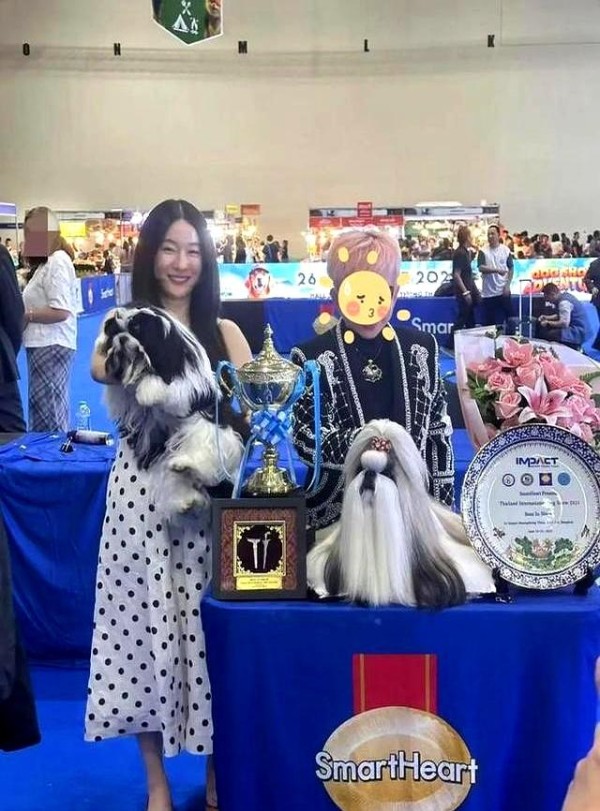 事情的起因是,有人在泰国曼谷的泰皇杯犬展上偶遇了霍思燕母子。