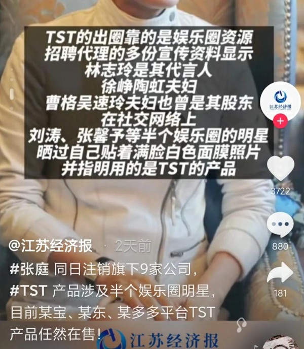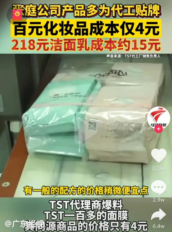 具网友爆料张庭旗下的TST庭秘密全是代理加工厂出来的,一百多的面膜成本只有几元 两百多的洗面奶成本不足15元。在入此大的利润下难怪张庭会走上微商这条路的。