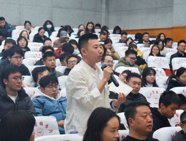 在现场提问环节,金灿荣与师生代表进行了充分的沟通与思想碰撞。