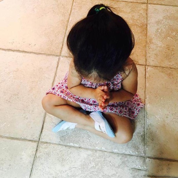 去年9月4日上午,孙俪在微博晒一组儿女的同步照:“两年前的等等,和现在的妹妹。”照片中,妹妹低头盘腿,双手合十,而和两年前的等等神同步。等等当年也是低头打坐,看起来很可爱。