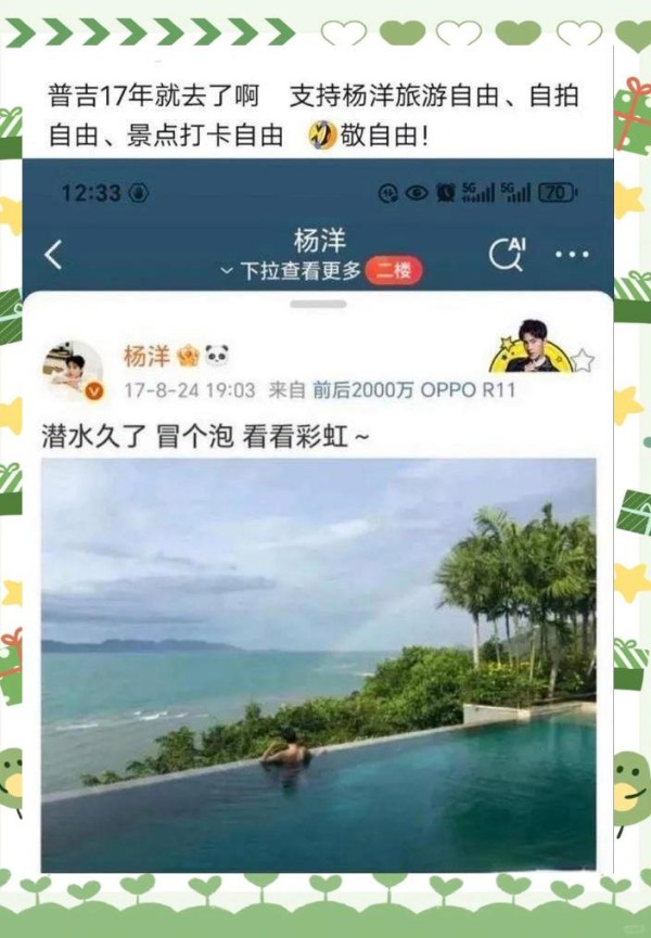 "我们杨洋哥哥可没那么龌龊,你们别乱猜了。"粉丝小王激动地反驳道,"那趟普吉岛之旅,明明就是公司组织的团建活动,怎么被你们解读成私密旅行了?"