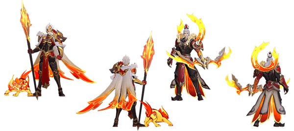 狗年限定皮肤,我们选择了杨戬和后羿的搭配,在故事包装上我们用永曜之星和辉光之辰来讲述一对天神兄弟和年兽的故事,从而让整体的包装更加的合理和有趣。在美术设计上,为了让年味更加浓郁,我们选择了红色为主色调,身上的纹样和配饰都沿用了工笔绘画中的繁琐装饰,包括肩膀上祥云的设计,都是将平面的图案立体化的处理方式,在年兽和特效的设计上,我们大胆尝试了2D平面的类似中国画火焰云纹图案,年味十足且有特点,再融入了神话中杨戬的三尖两刃刀和后羿的弓箭让天神的感受更加明显。在展示动画中我们第一次使用了人物从画卷中出来的表现方式,并且强调了年兽和角色的互动元素,让整体更加和谐和特别。