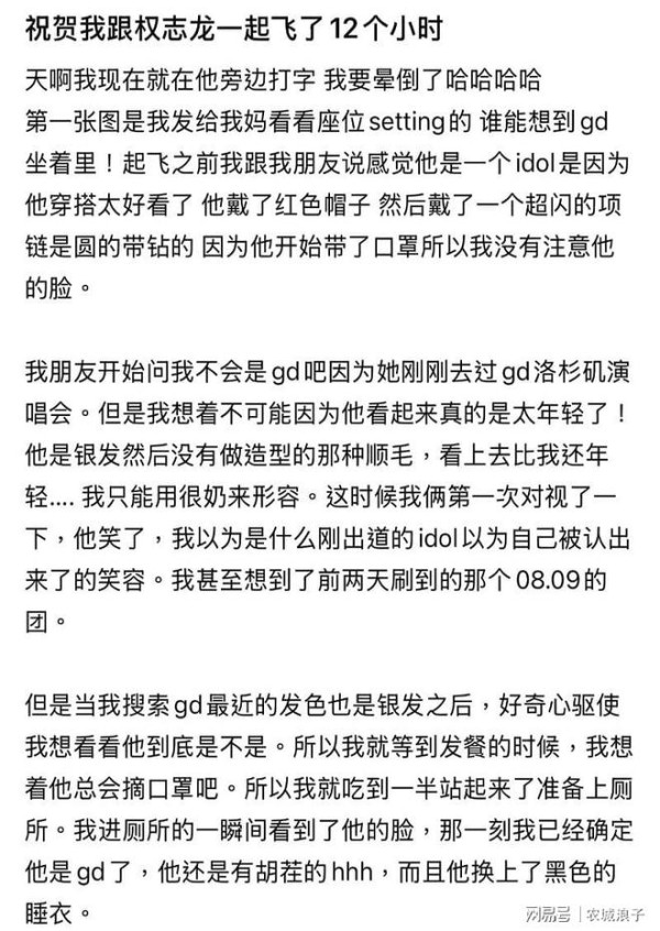 她在社交平台上分享了自己的经历,配上对GD的祝福,呼吁大家在崇拜偶像的同时,也要尊重他们的生活、理解他们的辛苦。