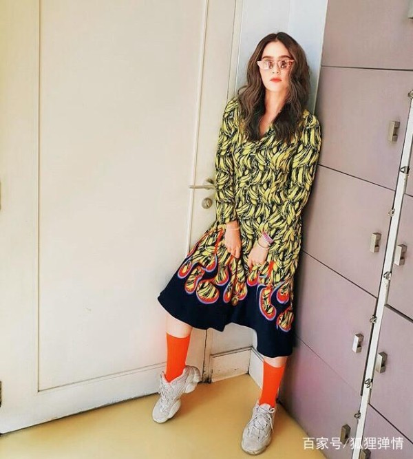 小编本人敲喜欢这身中长款印花长裙,远看犹如待绽放的孔雀开屏,颜色艳丽,搭橙色高筒袜和米白色老爹鞋,说不上来的意外,出乎意料的惊喜!