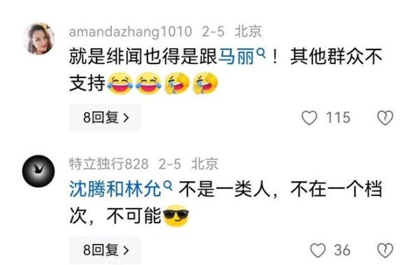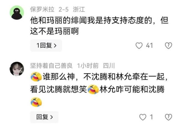 有网友在评论区调侃称,一看就是谣言,如果说沈腾和马丽之间传出绯闻还有点可信度,和林允之间没有半点可能。