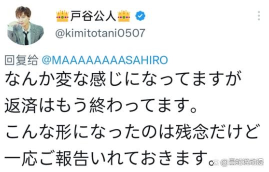 作为帝骑哥的演员井上正大,意料之外在自己的个人推特挂出来一件事,表示演员户谷公人一直在朝自己少量的借钱,而借钱之后完全没有要归还的意思,自己几乎每个月都在催促还钱,但是迄今为止一直都没有还钱。